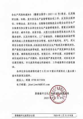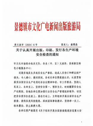 关于认真开展出版、印刷、发行各生产环境安全检查的通知