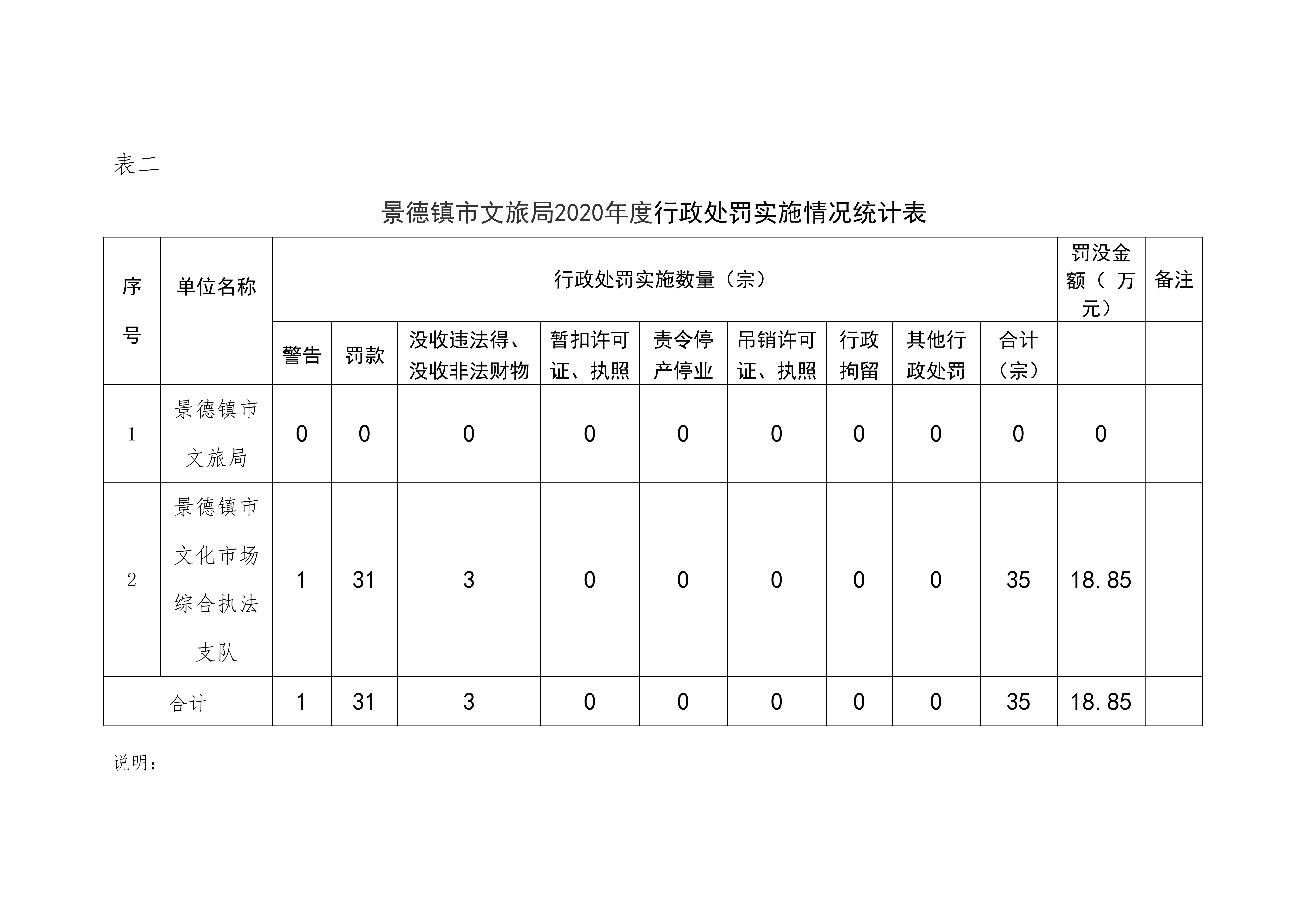 景德镇市文旅局2020年度行政执法数据