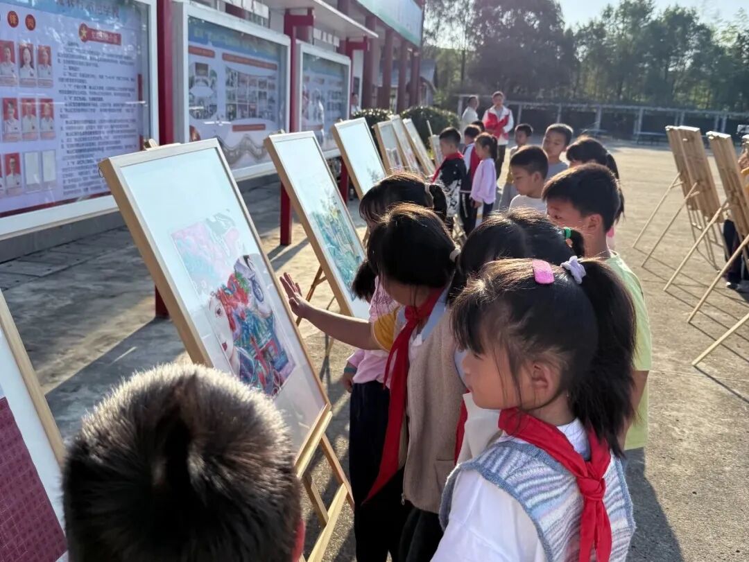 此次活动的亮点之一,是“瓷语千年·童画未来”2025年景德镇市优秀少儿美术书法作品展的校园巡展。展览精选全市近1200幅参赛作品中的佳作,既有描绘古老窑厂、传统制瓷工艺的画作,也有书写咏瓷诗词、“景德镇”“昌南”等字样的书法作品。孩子们驻足观赏,在轻声赞叹中,更燃起了对家乡陶瓷文化的热爱与传承之志。
