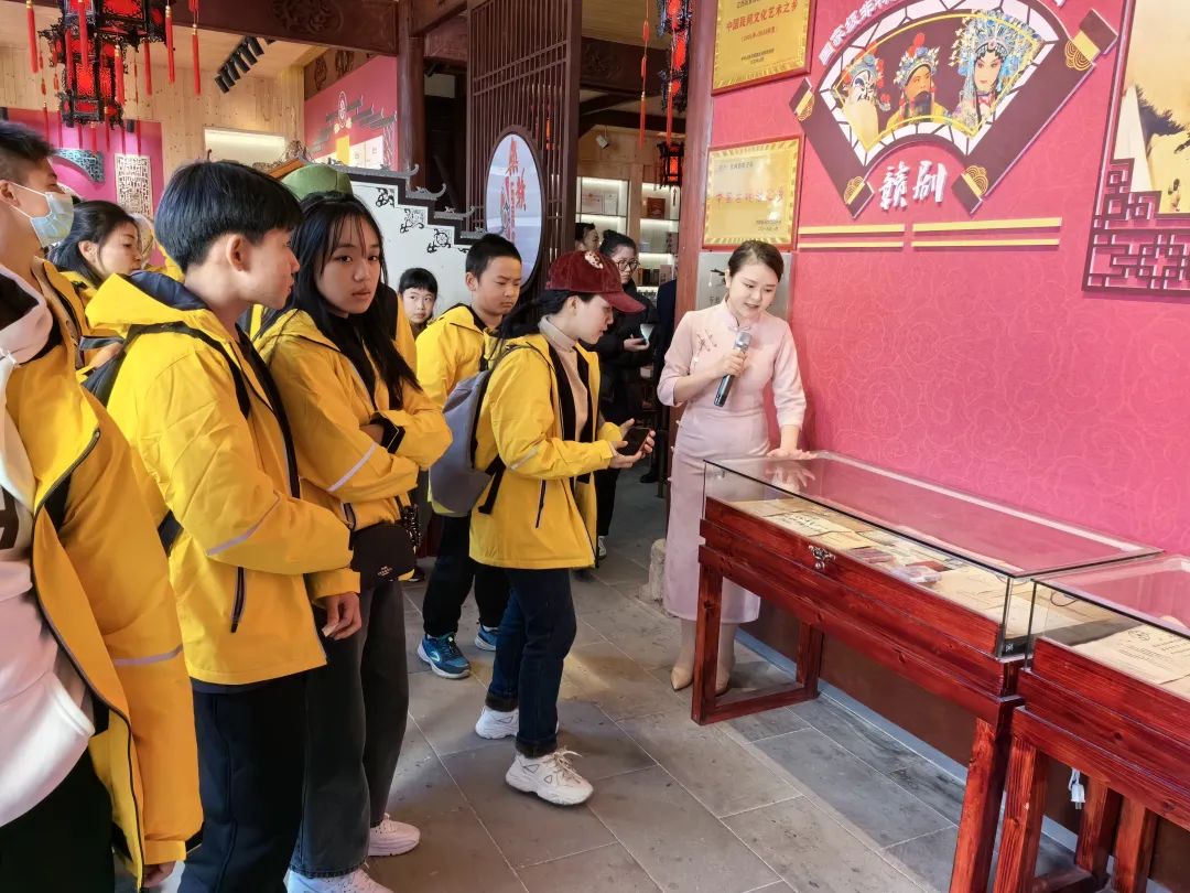 随后,营员们一行来到乐平市非物质文化遗产馆·赣剧楼,现场参观了多项乐平市非物质文化遗产名录,并观摩了由“乐赣轻骑兵”文艺志愿服务队精心选排的经典赣剧选段演出。通过现场近距离地欣赏,充分激发了营员们对赣剧这门传统戏曲艺术的兴趣和喜爱。