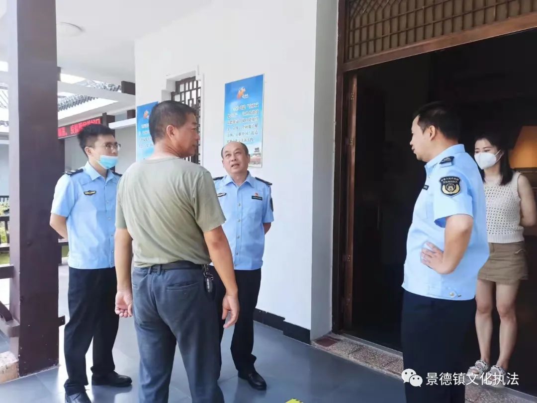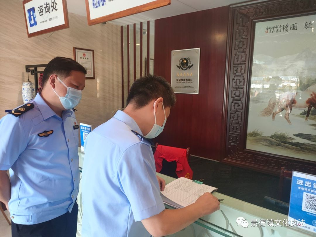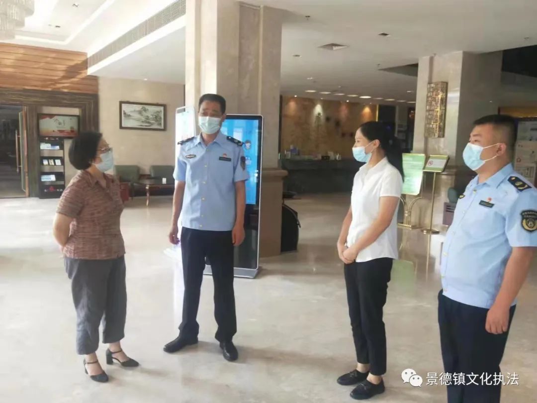 中秋节期间景德镇市文旅局共出动执法人员274人次,检查网吧、KTV、电影院、景点、星级酒店等场所121家次。对发现有部分场所工作人员口罩佩戴不规范以及工作人员核酸检测超期等问题,联合检查人员要求立即整改,并要求经营者严格落实主体责任,切实认识到疫情防控的重要性和紧迫性,克服侥幸心理和松劲心态,景德镇市文化市场综合执法支队还将对整改不到位的场所严肃处理。
