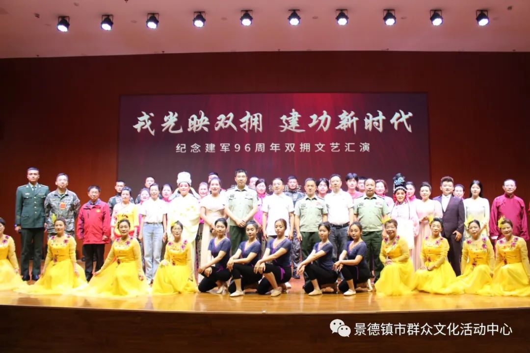 在中国人民解放军建军96周年来临之际,为进一步做好新时代双拥工作。景德镇市群众文化活动中心联袂武警景德镇支队举办了一场以“戎光映双拥 建功新时代”为主题的文艺演出,给战士们送上了一场文化盛宴。武警景德镇支队支队长龚涛,政治委员周勇敢,景德镇市文旅局党组成员、副局长占兴华出席此次活动。