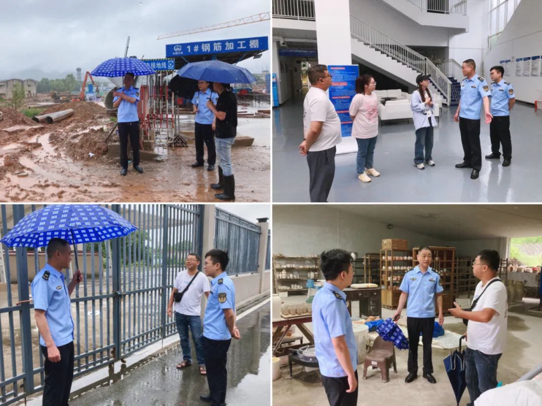 支队长熊辉带领执法人员来到三宝景区进行了检查,提醒负责人做好汛期安全生产工作,制定好应急预案,突发情况第一时间上报有关部门,并与民窑博馆物工作人员一行先后来到东三宝城市更新项目、三宝瓷源境、枫树山林场、珠山区实验学校等地共同对全国文物保护单位湖田古瓷窑址建设控制地带内的违法建设情况开展巡查,告知现场负责人必须严格遵守文物保护相关法律法规,加强文物保护力度,履行文物保护职责。